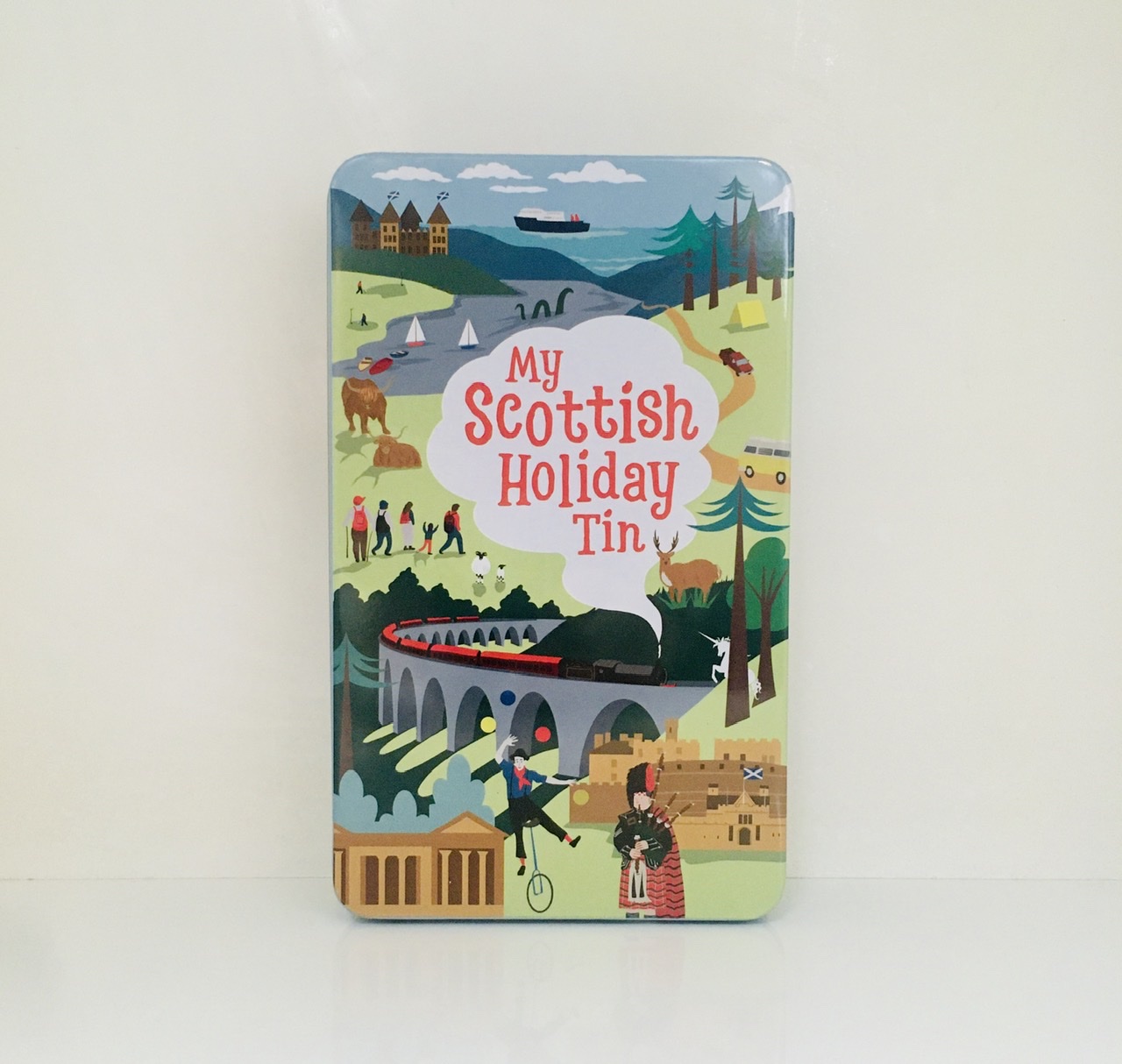 Includes: 2 x mini sticker sheets (one with letters to personalise the tin lid with names and holiday destinations, one with images to stick on), Visitor ID card to personalize, 48pp mini travel journal for photos, fun facts and did-you-knows, 48pp mini boredom-buster puzzle book, Set of 5 colour pencils and Set of 52 super-collector cards in card box