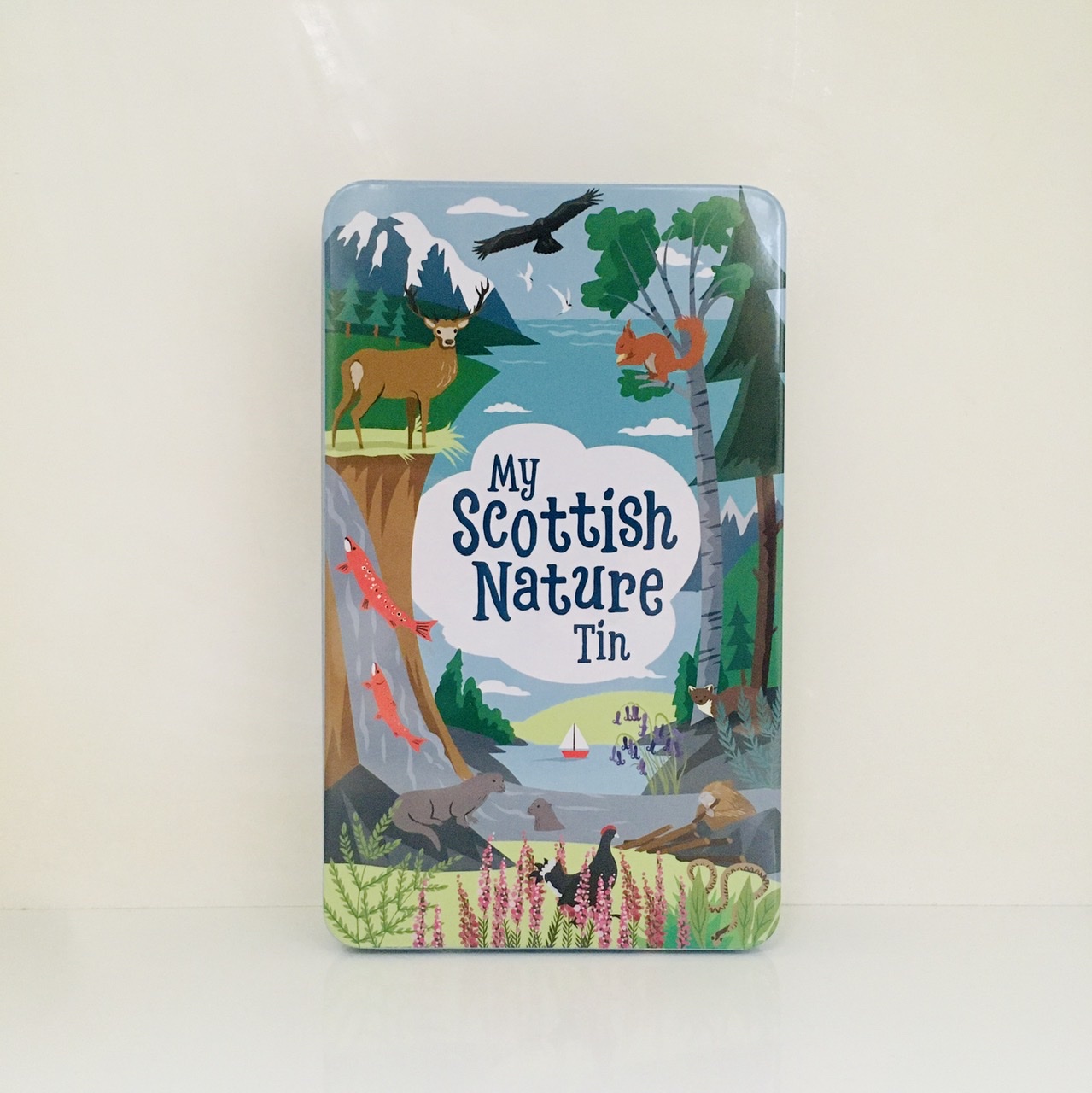 A unique activity tin all about Scottish nature featuring animals, trees, plants and landscapes, from the golden eagle and red deer to the pine marten and wild cat, not forgetting the Scots pine, silver birch and heather and lots more besides.